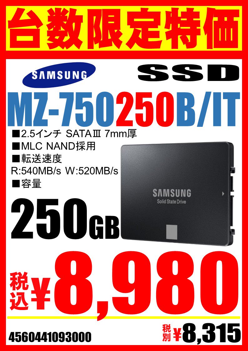 サムスン製250GB SSDが税込8,980円♪